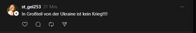 Seit Beginn des Krieges gibt es natürlich auch entsprechende russische Propaganda und Hetze gegen die Ukraine, gegen ukrainische Flüchtlinge und gegen alle, welche diese unterstützen. Kennt man von Putins Terror-Regime nicht anders.