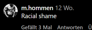 Wir haben in unserer Gesellschaft wieder ein ganz massives Problem mit Rassismus. Er wird wieder lauter, aktiver. Diese Kommentare sind nur die Spitze eines riesigen Eisbergs. Wir dürfen diesen Leuten das Feld nicht überlassen. Wenn ihr Rassismus seht – egal, ob RL oder Online – dann ist es eure gottverdammte BÜRGERPFLICHT NEIN zu sagen.
